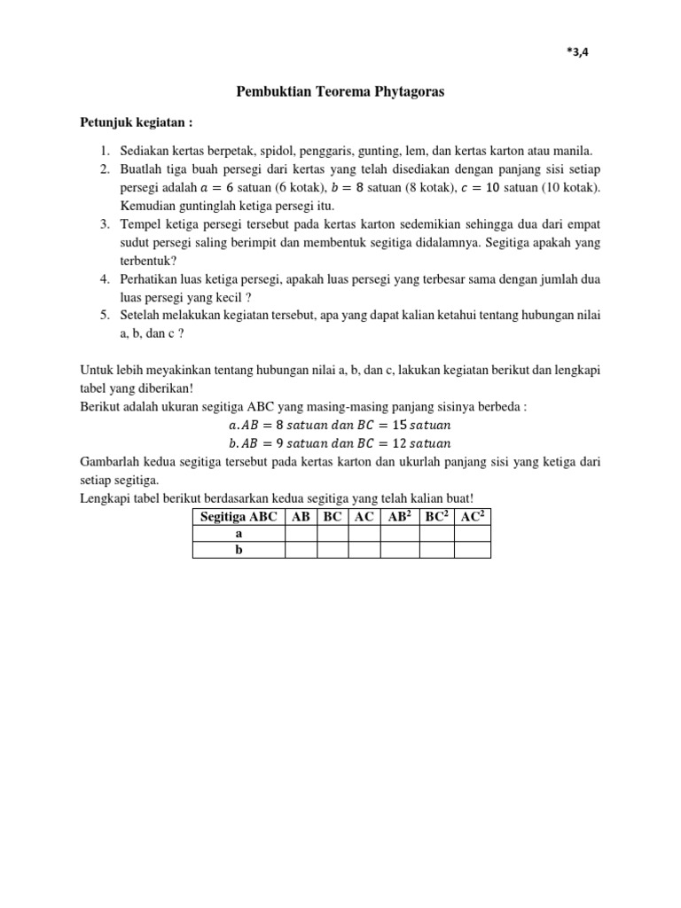 8a Pembuktian Teorema Phytagoras Kegiatan Kelompok