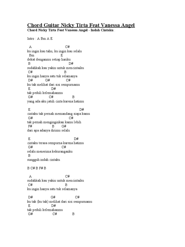Lirik Dan Chord Lagu Nicky Tirta Feat Vanessa Angel Indah Cintaku Pdf Document